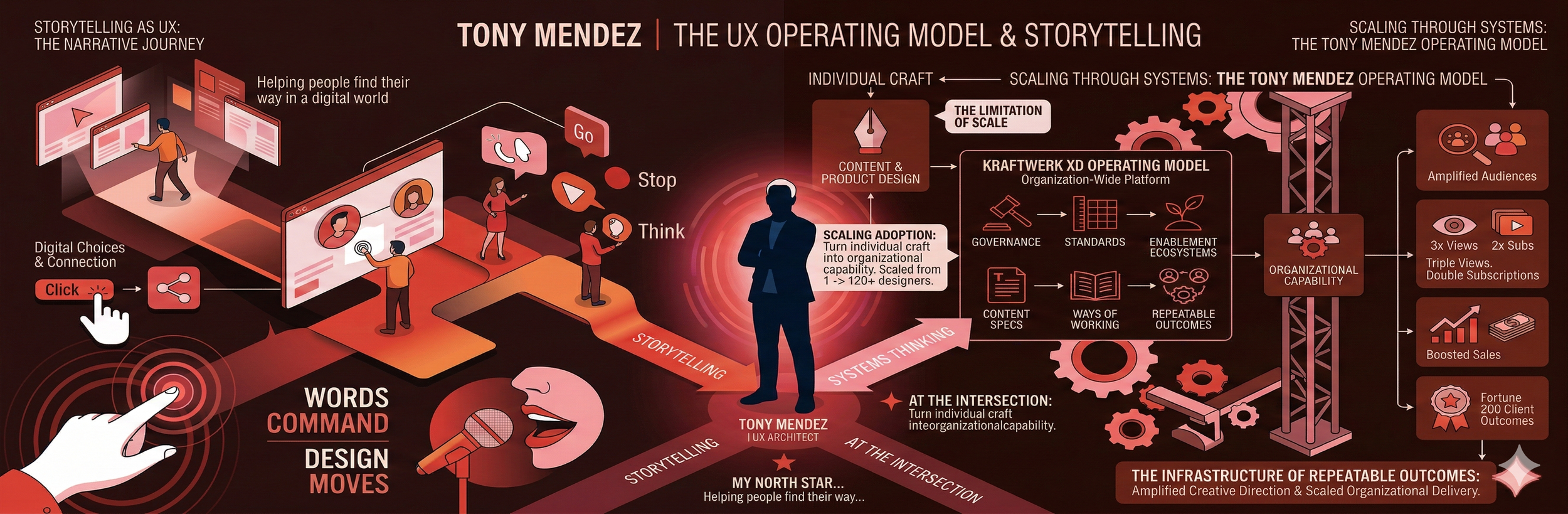 The Multiplier: Future-Proofing the Org I help design teams think, adapt, and learn faster than technology changes. Through infrastructure like Kraftwerk and XD Process Training, I leverage AI as a powerful amplifier of human ingenuity, automating the mundane to reclaim the craft of high-resonance experience design.
